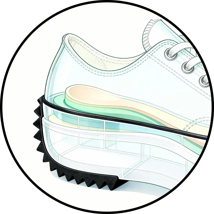 Outsole that keeps you steady on wet or uneven surfaces